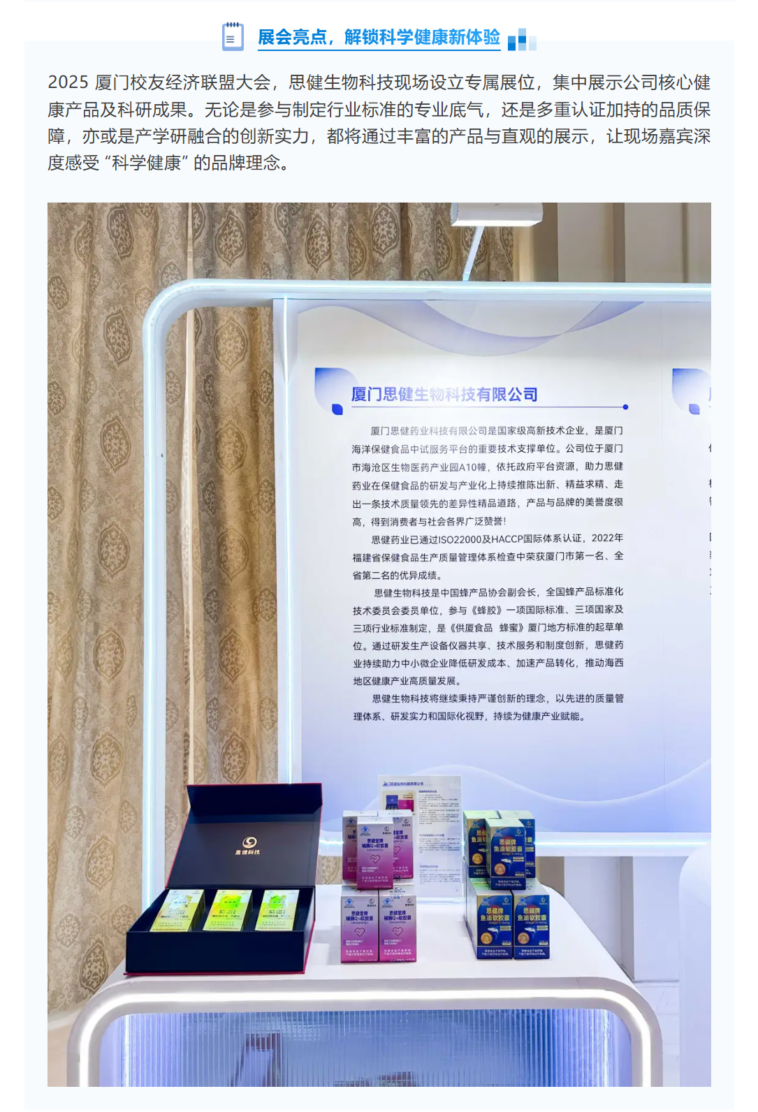 校友經(jīng)濟聚力,健康科技同行!思健生物科技受邀參展 2025 廈門校友經(jīng)濟聯(lián)盟大會,解鎖科學健康新體驗